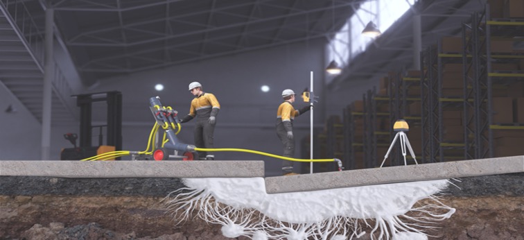 Thanks to its high strength and low density, Bacel is ideal for lifting sunken concrete floors. Compared to PU foam, Bacel provides more uniform and long-lasting support.
